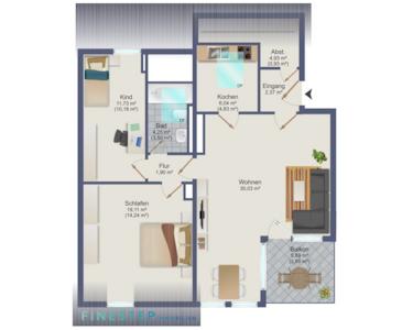 Durch unsere erstellte Wohnflächenberechnung durch unseren Architekten wurden die Dachschrägen von der Wohnfläche abgezogen. Dennoch steht Ihnen hier eine Gesamtnutzfläche von rund 86 m² zur Verfügung.