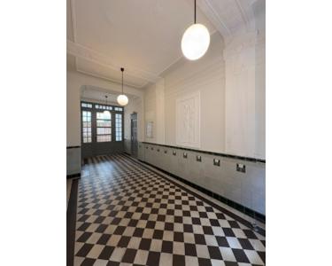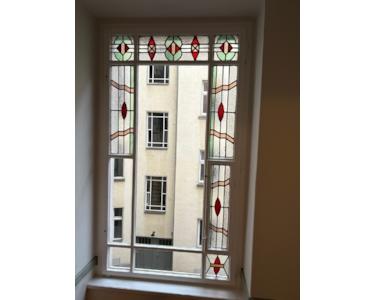 In einer sehr ruhigen Seitenstraße, und doch in unmittelbarer Nähe zum Helmholtzplatz, liegt der sanierte Gründerzeitaltbau, dessen original erhaltende Stilelemente das Besondere dieser Wohnung prägen: historische Holzkastenfenster und Deckenstuck, Kassettentüren, abgezogene Dielenböden und hohe Decken. Die Wohnung liegt im repräsentativen Vorderhaus im 2. OG. Der sonnige, wettergeschützte Südwest-Balkon ist in die Jugendstilfassade integriert. Schlafzimmer und Küche sind zum ebenfalls ruhigen Innenhof ausgerichtet. Sämtliche Räume werden von der Diele aus betreten. Neben dem Schlafzimmer befindet sich ein großzügiger begehbarer Kleiderschrank.
