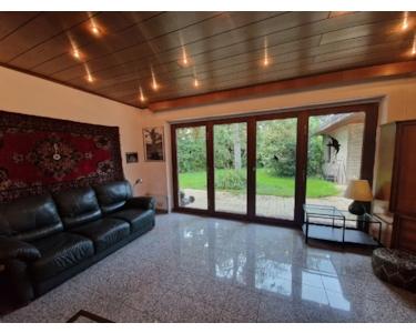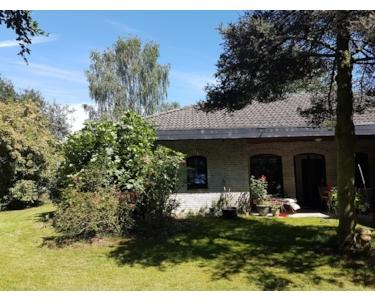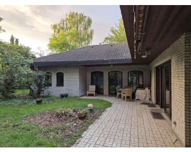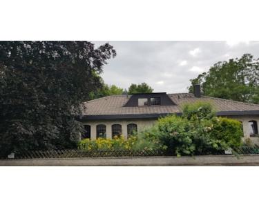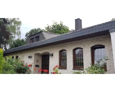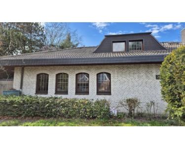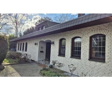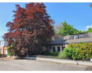 Grosszügiger freistehender Winkel - Bungalow in Korschenbroich-Kleinenbroich auf 1552 qm Grundstück mit grossem Garten und alten Baumbestand im GEWERBEGEBIET PÜLLENWEG. Geeignet für Wohnen und Arbeiten unter einem Dach. Doppelgarage