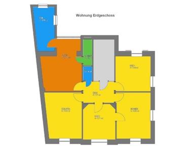 - Erdgeschosswohnung: ca. 108 m², 4 Zimmer, Küche, Bad, separates WC