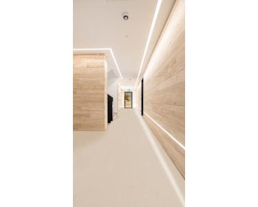 Das Gebäude überzeugt durch seine edle Travertin-Natursteinfassade und einen barrierefreien Zugang. Ein stilvolles Treppenhaus mit Lichtkonzept sowie ein Aufzug bis in die Tiefgarage unterstreichen den Anspruch an Komfort und Ästhetik.
