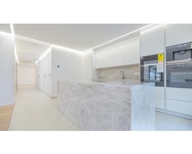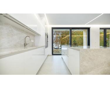 - Hochwertige Einbauküche mit Marken-Elektrogeräten und Quarzit-Arbeitsplatte