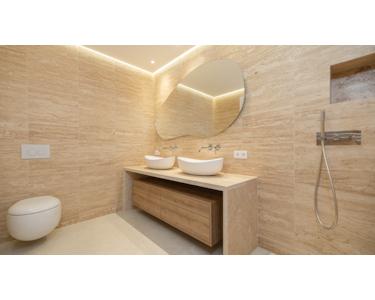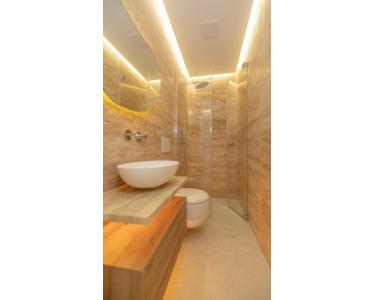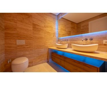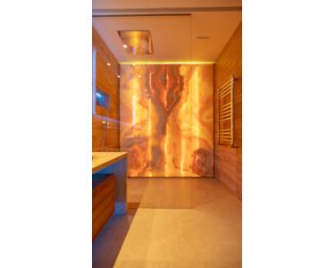 - Badeszimmer mit Onyxplatten, Ambientebeleuchtung und Designerarmaturen