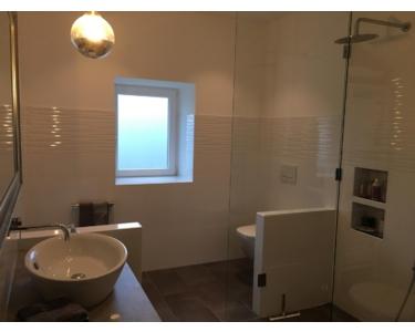 Darüberhinaus verfügt diese Immobilie in der Hauptwohnung über 2 Bäder, wobei sich im Erdgeschoss ein modernes Bad mit begehbarer Dusche und im Obergeschoss ein luxuriöses Wellnesbad mit großem Whirlpool befindet.