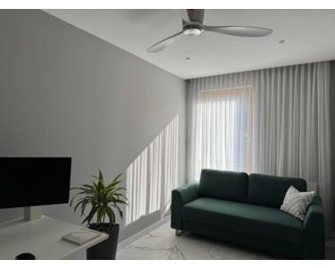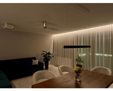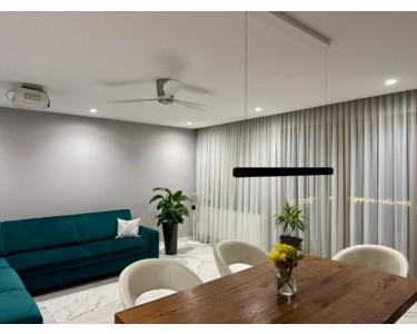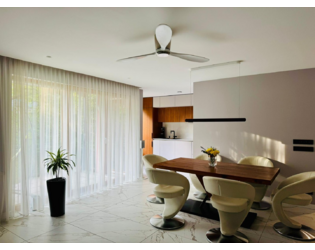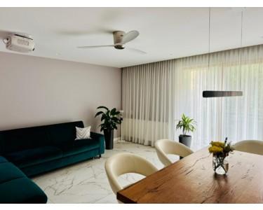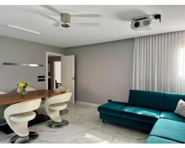Elektrische Rollläden mit App-Steuerung, Kermi-Heizkörper mit Bosch-Thermostaten, Casa Fan-Deckenventilatoren, Philips Hue-Lichtsteuerung, Apple TV mit Epson-Projektor und elektrische Leinwand sowie ein cloudbasiertes Sicherheits- und Alarmsystem bieten höchsten Komfort und Sicherheit.