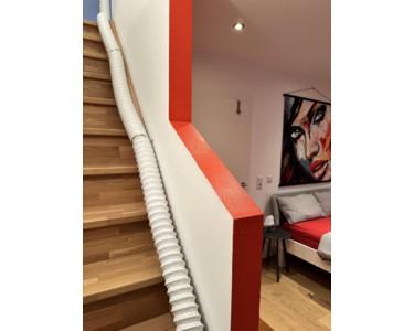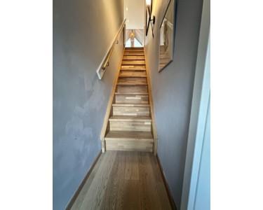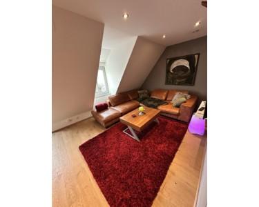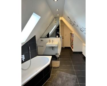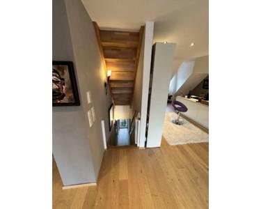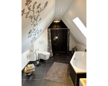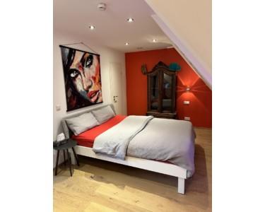Das Schlafzimmer ist durch eine Treppe mit einer einem hochwertigen en Suite Badezimmer mit begehbarer Dusche und Badewanne verbunden. Dort befindet sich auch ein voll möbliertes, großes Ankleidezimmer.Ein zweites Schlafzimmer befindet sich im durch eine Treppe verbundenen EG und ist mit einem Duschbad ausgestattet.