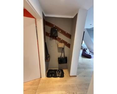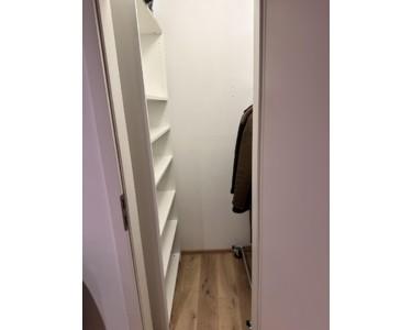 Im Gang zwischen Wohnzimmer und Schlafzimmer befindet sich links eine Gästetoilette und rechts die Garderobe.
