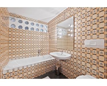 SANITÄR: Das Bad präsentiert sich in zeitgemäßem Zustand, ist raumhoch gefliest und mit Dusche sowie Badewanne ausgestattet – ein Ort der Erfrischung und Entspannung gleichermaßen.