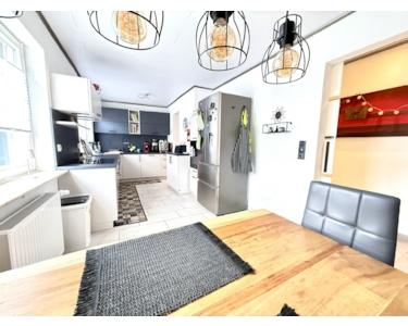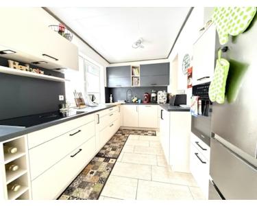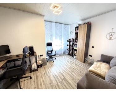 Das moderne Badezimmer wurde etwa im Jahr 2024 renoviert und befindet sich in sehr gutem Zustand. Die Küche ist modern ausgestattet und schließt direkt an das Esszimmer an. Vom Wohnzimmer aus gelangt man auf beide Terrassen. Im Wohnzimmer besteht außerdem die Möglichkeit, einen Pelletofen anzuschließen, was für eine angenehme Wärme und eine gemütliche Atmosphäre sorgt. Im Obergeschoss befindet sich ein weiteres Zimmer, das sich ideal als Kinderzimmer, Büro oder Gästezimmer nutzen lässt.