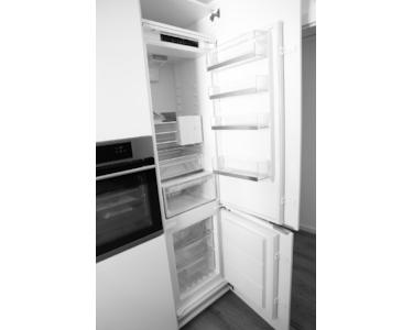 Moderne Einbauküche mit Spülmaschine, großem Kühlschrank, separatem Backofen, Ceranfeld mit integrierter Direktabsaugung