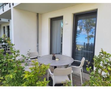 Genießen Sie die Ruhe auf Ihrer 8 m² großen Terrasse, die direkt von der Wohnung zugänglich ist. Das gesamte Domizil ist rollstuhlgängig und voll ausgestattet, damit Sie sich um nichts kümmern müssen. Ihr eigener Außenstellplatz macht die Anreise entspannt.