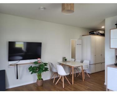 Der warme Laminatboden und die Fliesen im Bad empfangen Sie. Die Küche ist komplett ausgestattet mit Herd, Kühlschrank und sogar einem Airfryer. Weil wir wissen, wie wichtig guter Schlaf ist, schützen Fliegengitter die 2-fach verglasten Fenster; ein Kinderbett kann zugestellt werden, und zwei Fernseher sorgen für Unterhaltung.
