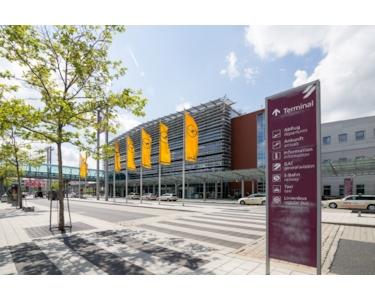 Das moderne Terminal 1 des Flughafens Dresden besticht durch seine hochwertige Ausstattung und eine repräsentative Architektur.