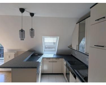 Eichenparkett, Hebe-Schiebetür zum Balkon, gebrauchte Einbauküche ist vorhanden und im KP enthalten, Einbauschränke in der Dachschräge im Schlafzimmer, elektrische Velux Rolladen in der Dachschräge, abschließbarer Keller