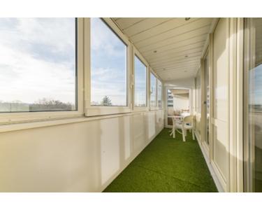 Die schön geschnittene Wohnung teilt sich in zwei separate Wohnungen im 5. Obergeschoss auf, die im Jahre 2020 komplett saniert worden sind. Bei dieser Sanierung wurden hochwertigste Materialien in einem einheitlichen Designkonzept verwendet. Besonders schön ist der nach Süden ausgerichtete Balkon bzw. Wintergarten mit atemberaubendem Ausblick.