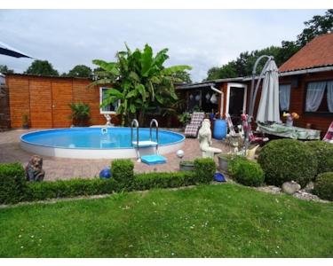 Mit großer Scheune (ausbaufähig), 5 Garagen + 4 Abstellplätze Wohnwagen /PKW, großen Garten mit Pool, 2 Terrassen und ein großes Gartenhaus zum Feiern.