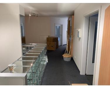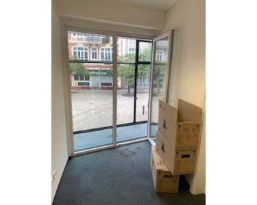Obergeschoss ist mit einer Treppe verbunden. Dort befinden sich auf ca. 80m² mehrere Büroräume, ein Lagerraum, Teeküche sowie ein WC. Nach außen hin überzeugt das Ladenlokal mit einer breiten und repräsentativen Schaufensterfront, die sich über das EG bis ins 1. Obergeschoss fortsetzt.