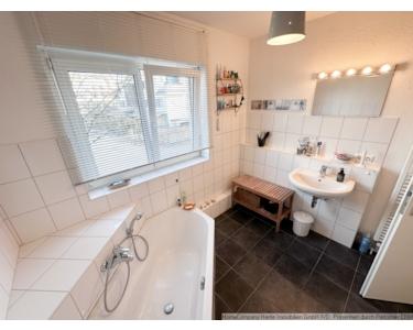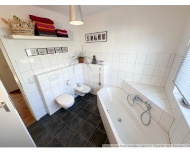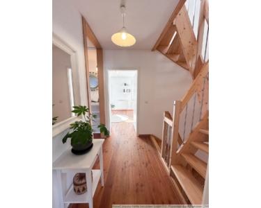Im Ergeschoss sowie die Bäder mit Fliesenboden und Fußbodenheizung, die oberen Etagen mit Holzdielen-Fußboden und Radiatoren.