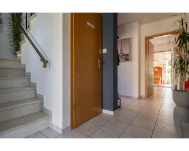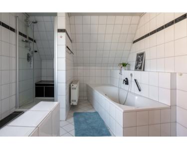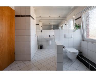 Im Obergeschoss stehen mehrere Schlafzimmer sowie ein geräumiges Badezimmer zur Verfügung. Die großzügige Raumaufteilung schafft viele Möglichkeiten – ob Familienwohnen, Gästezimmer oder Homeoffice. Ergänzt wird das Angebot durch eine kompakte zweite Wohneinheit auf dem Grundstück, bestehend aus drei Räumen und direkt angrenzend an eine große, überdachte Terrasse. Ideal für Gäste, Homeoffice, Hobby oder als Einliegerwohnung.