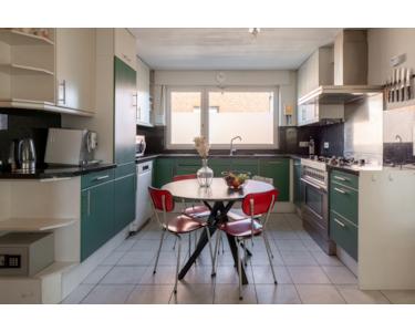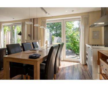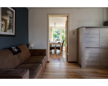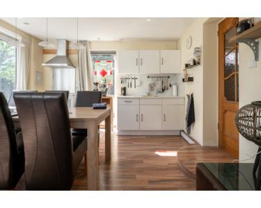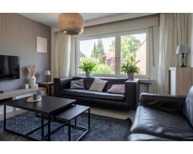 Das großzügige, lichtdurchflutete Wohnzimmer bildet das Herzstück des Hauses. Große Fensterflächen sorgen für eine angenehme Helligkeit und einen schönen Blick ins Grüne. Die separate Küche ist funktional gestaltet und bietet Potenzial für eine Modernisierung oder den Umbau zu einer offenen Wohnküche – perfekt für alle, die modernes Wohnen mit gemütlicher Atmosphäre verbinden möchten.