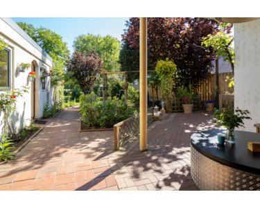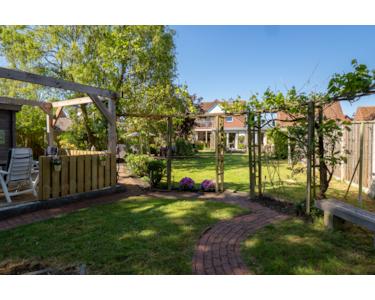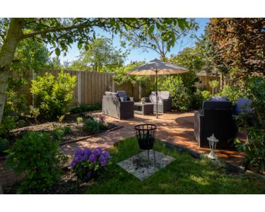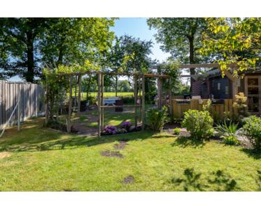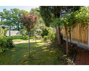 Der liebevoll angelegte Garten ist rundum eingewachsen und bietet viel Privatsphäre. Mit einer Fläche von ca. 15 x 15 Metern ist ausreichend Platz zum Entspannen, Gärtnern oder Spielen vorhanden. Von der Loggia aus genießen Sie den Blick über den Garten und die umliegenden Felder – hier erleben Sie pure Ruhe und Natur.