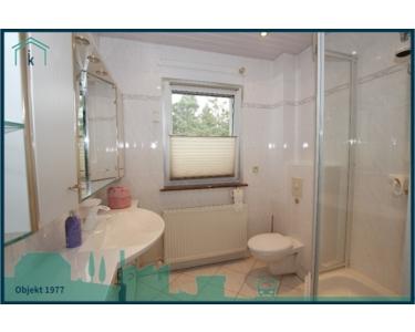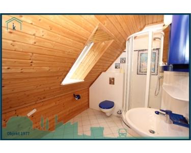 Die Bäder im EG, DG und Spitzboden sind je mit einer Dusche, das Bad im DG ist zusätzlich mit einer Badewanne ausgestattet.