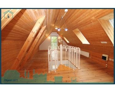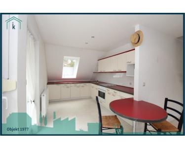 Im Dachgeschoss befindet sich ein weiterer Wohn- und Essbereich der mit einer 2. Einbauküche ausgestattet ist. Vom Wohn-/Essbereich können Sie den nach Westen ausgerichteten Balkon betreten. Des weiteren befinden sich in dieser Etage ein weiters Tageslichtbad mit Wanne und Dusche, 2 Zimmer und ein Abstellraum. Vom Wohnbereich aus gelangt man über eine Treppe in den ausgebauten Spitzboden. Hier befinden sich das 3. Bad, der zweite Balkon und viel Platz für Kinder, Büro, Gäste etc.