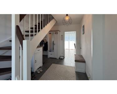Das freistehende Einfamilienhaus wurde in massiver Bauweise mit einem Krüppelwalmdach errichtet. Die Dacheindeckung erfolgte mit engobierten Tonziegeln in zeitgemäßem schwarz matt. Die Fenster bestehen aus 3-fachverglasten Kunststoff/Isolierglas und verfügen über Außenjalousien. Als Bodenbelag wurden Fliesen in Holzoptik und hochwertiges Klick-Vinyl verwendet. Die Wärmeversorgung erfolgt über eine Wasser-Luft-Wärmepumpe inklusive Lüftungsanlage mit Wärmerückgewinnung. Im gesamten Haus befindet sich Fußbodenheizung. Das Objekt ist komplett mit Wasser, Strom und Abwasser erschlossen.