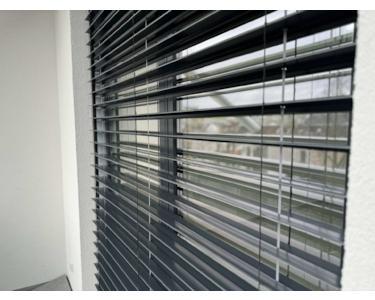 Durch bodentiefe Fenster werden die Räumlichkeiten mit Licht durchflutet. Mit Hilfe von elektrischen Alujalousien dunkeln Sie die Wohnräume bequem ab.