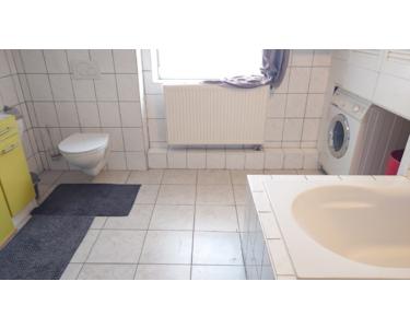 Das Badezimmer ist großzügig geschnitten und verfügt über eine Badewanne sowie eine separate Dusche.