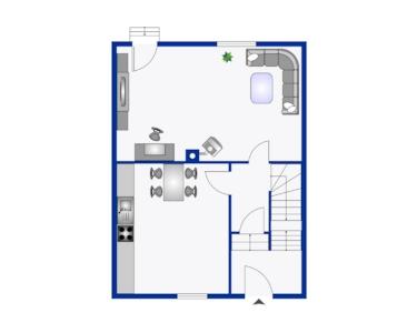 Beim Betreten des Hauses gelangen Sie in einen einladenden Eingangsbereich, der direkt in den offenen Wohn- und Essbereich führt.