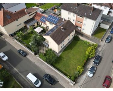 Dieses charmante Ein-Zweifamilienhaus wurde im Laufe der Zeit fünf mal umgebaut bzw. erweitert und ist so auf dem neuesten Stand. Mit einer Wohnfläche von 160 m² ist hier genügend Platz für 1-2 Familien. Das Objekt befindet sich auf einem großzügigen Grundstück von 680 m², welches sich ideal auch teilen lässt und so für weitere Bauvorhaben großes Potential bietet. Beim Betreten des Hauses empfängt Sie ein großer einladender Flur, der zu den verschiedenen Bereichen im Erdgeschoss führt. Hier finden Sie ein helles Wohnzimmer, das durch große Fenster viel Tageslicht erhält und direkten Zugang auf die Terrasse hat. Die angrenzende Küche ist funktional gestaltet und bietet ausreichend Platz für gemeinsame Mahlzeiten. Ein Schlafzimmer und ein modernes, behindertengerechtes Badezimmer runden das Raumangebot im Erdgeschoss ab. Im Obergeschoss wurde 1988 ein zusätzliches Zimmer angebaut, welches zur Zeit als Schlafzimmer genutzt wird. Die Küche ist sehr modern ausgestattet. Ein weiteres Zimmer kann als Kinderzimmer oder Büro genutzt werden. Highlight ist der Balkon, welcher direkt vom Wohnzimmer aus zugänglich ist und zum Entspannen im Freien einlädt. Auch das Obergeschoss verfügt über ein weiteres Badezimmer und eine Klimaanlage im Wohnzimmer und im Schlafzimmer, die für optimalen Komfort sorgen. Der Keller bietet zusätzlichen Stauraum. Eine große Doppelgarage mit Grube ist ideal für Tüftler und sorgt für komfortable Parkmöglichkeiten. Zwei weitere Stellplätze befinden sich direkt vor der Garage auf dem Grundstück. Der gepflegte Garten ist ein Paradies für Naturliebhaber und bietet zahlreiche Gestaltungsmöglichkeiten. Ein Brunnen sorgt für eine effiziente Bewässerung des Gartens. Mit der Photovoltaikanlage sind Sie für die Zukunft gut gerüstet, da sie eine nachhaltige Energie- und Einnahmequelle bietet.