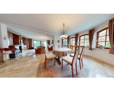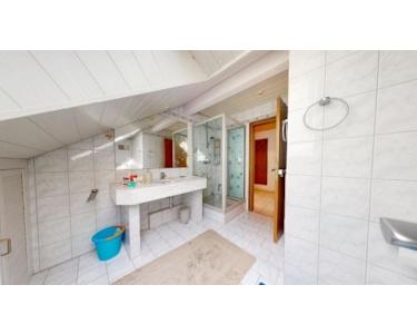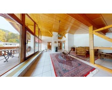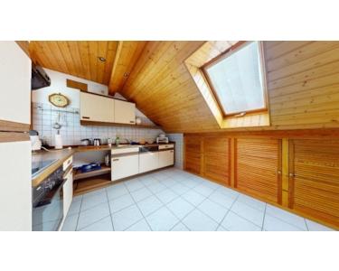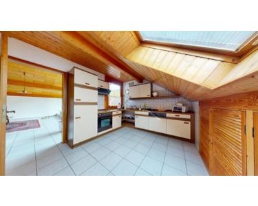 Das Obergeschoss begeistert mit einem lichtdurchfluteten Wohn-Essbereich, dekorativen Sichtbalken und direktem Zugang zur überdachten Loggia – ein Ort zum Entspannen mit herrlichem Ausblick. Eine voll ausgestattete Küche, zwei weitere Zimmer und ein gepflegtes Tageslichtbad schaffen hier eine eigenständige Wohneinheit mit besonderem Charme.