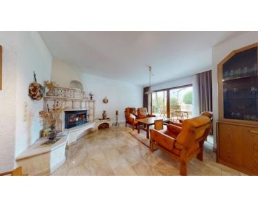 Bereits beim Betreten des Hauses beeindruckt die harmonisch gestaltete Raumaufteilung, die sich durch Großzügigkeit, Helligkeit und eine fließende Verbindung der Wohnbereiche auszeichnet. Im Erdgeschoss öffnet sich der weitläufige Wohn- und Essbereich mit elegantem Marmorboden und Kaminofen zu zwei Gartenzugängen sowie zur sonnigen Terrasse – der perfekte Ort für gesellige Abende und den Blick ins Grüne. Die angrenzende Küche mit praktischem Abstellraum, ein helles Tageslichtbad mit Wanne und Dusche, zwei vielseitig nutzbare Zimmer sowie ein separates Gäste-WC ergänzen diese Etage ideal.
