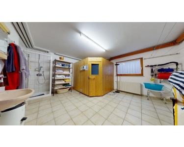 Heizungskeller, Tankraum, Tageslichtbad mit Dusche, zwei Zimmer, Raum mit Wasseranschlüssen ( Waschraum oder Küche), durch das Erkerzimmer gelangt man zu einem weiteren Abstellraum und dem großzügigen Saunaraum mit Eckdusche, Flurbereich und Treppenhaus