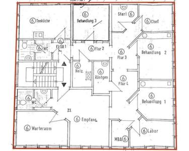 Die angebotene Eigentumseinheit, komplette Etage (Teileigentum Nr. 6) liegt im 1. Obergeschoss besteht aus 11 Räumen zzgl. Flur, Heizraum, einer WC-Anlage (Damen / Herren) und einem einfachen WC.