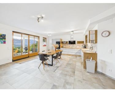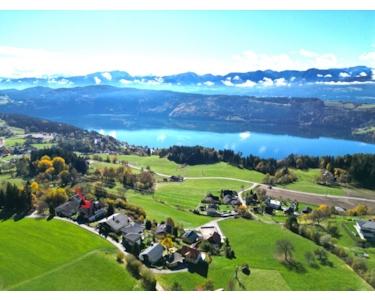 Das 1991 errichtete Haus wurde 2022 vollständig und hochwertig renoviert und ist sofort bezugsfertig. Die großzügige Bauweise, die edlen Oberflächen mit hochwertigen Fliesen, exklusive Bäder sowie mehrere modern ausgestattete Küchen unterstreichen den gehobenen Anspruch der Liegenschaft. Im weitläufigen Erdgeschoss öffnen sich Wohn- und Aufenthaltsbereiche zur sonnigen Südterrasse; hier befinden sich neben dem großen Wohnzimmer die Küche, ein Gästezimmer bzw. Zimmer sowie mehrere Sanitärräume. Über eine gewundene Stiege gelangt man ins Obergeschoss, das neben einem weiteren Wohnzimmer drei Schlafzimmer bietet und mit einem Südbalkon aufwartet, der einen makellosen See- und Bergpanoramablick eröffnet. Das Souterrain mit Ausgang in den Garten umfasst ebenfalls ein Wohnzimmer, eine Küche, drei Schlafzimmer und Sanitärräume sowie Wirtschafts-, Heiz- und Abstellräume; Dieses Landhaus bietet die Möglichkeit für drei Wohneinheiten. Die Wohnung im Souterrain wird aktuell als Ferienwohnung vermietet. Diese Wohnung kann natürlich auch als Einliegerwohnung mit eigenem Eingang genutzt werden– ideal für Mehrgenerationen, Gäste oder Homeoffice. Jedes Geschoss, kann als abgetrennte Wohneinheit verwendet werden, da sich in jeder Etage eine Küche, Wohnzimmer, mehrere Schlafgelegenheiten und mindestens ein Sanitärraum befindet.