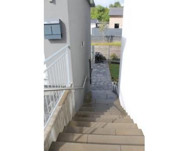 In einer ruhigen Seitengasse gelegen, erreichen Sie die Wohnung im Erdgeschoss bequem über die Außentreppe seitlich am Haus.