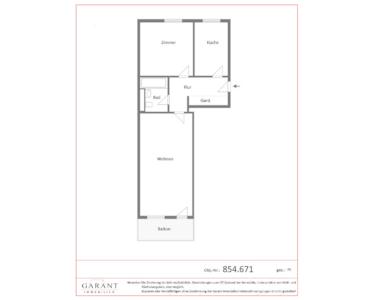 - zwei Zimmer: Wohnzimmer mit Balkon, Schlafzimmer