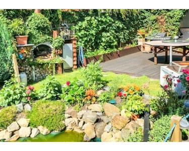 • Gartenteich mit Koi-Besatz, Filteranlage, Elektrozaun (Schutz vor Reihern und Katzen)