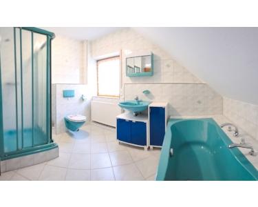 • Bad mit Dusche, Badewanne, WC, Waschbecken (komplett gefliest)