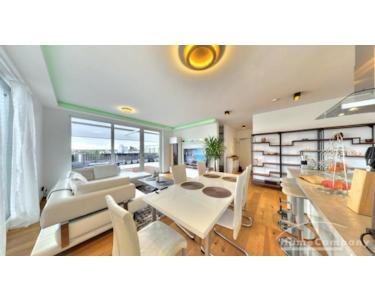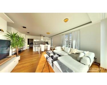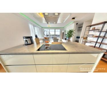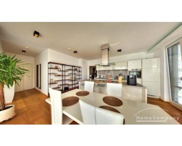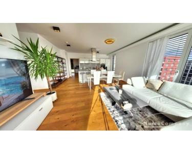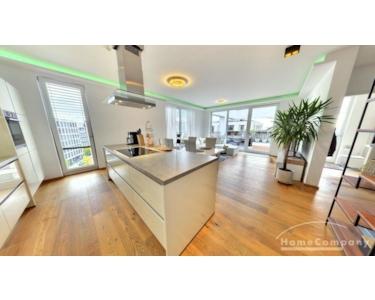 Eindrucksvolles Penthouse im Hafengoldprojekt von Offenbach, and der Grenze zu Frankfurt. Komplett hochwertig möbliert & ausgestattet.