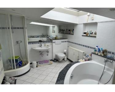 3-Zimmer-Eigentumswohnung mit großer und sonniger Dachterrasse ( ca. 50 m² groß ), Diele mit elektrisch zu öffnenden Oberlicht, Tageslichtbad mit Dusche, Wanne, wandhängendem WC, Handtuchheizkörper, Waschmaschinenanschluss und elektrisch zu öffnenden Oberlicht, Gäste WC, Küche mit Einbauküche und angrenzendem Vorratsraum.
