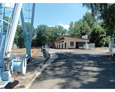 Es gibt eine etwa 60,0 m lange und ca. 6,0 m breite in stahleingefasst Beton-Verladerampe welche in ihren variablen Höhen verschieden an- und befahrbar ist.