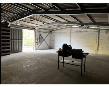 Im hinteren Bereich des Gebäudes gibt es einen ca. 270 m² großen separat gelegenen und abgetrennten Werkstattbereich mit zwei großen LKW - Montagegruben sowie einem weiteren Nebenraum. Die Hallenhöhe am Trauf beträgt ca. 6,00 m und am Fürst ca. 7,00 m. Die Zufahrt über die beiden Haupttore (isolierte Flügel-Tore 4,70 m x 4,70 m) ist selbst mit größeren Gespannen problemlos möglich.