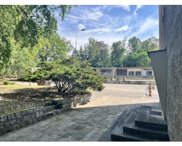 Im EG befindet sich neben dem einseitigen Sanitärraum auch der Heizungsraum. Gefolgt von einer Räumlichkeit mit ca. 80 m² und 3,0 m Innenhöhe, welche ehemals als Mensa genutzt wurde. Von hier aus gelangt man über den in der der Gebäudemitte angeordneten Flur, in zahlreiche links-, sowie rechts angeordnete Räumlichkeiten welche ehemals als Schulungs- und Büroräume genutzt wurden.