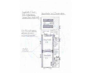 Weiterhin befindet sich im Kern der Halle ein ca. 150 m² großer, im 1. OG gelegener Bereich. Zusätzlich gibt es in diesem OG einen ca. 170 m² großen Lagerraum der über ein Treppenhaus von innen, sowie über eine Gabelstaplerluke von außen erreichbar ist.