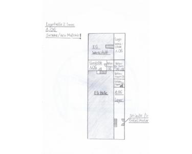 In diesem Bereich gibt es einen weiteren Lagerraum von ca. 50 m², der über ein ca. 3,0 m x 3,0 m großes Schiebetor betreten werden kann. Raumhöhe 3,00 m +…
