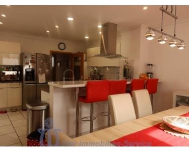 Das Anwesen verfügt über eine helle und moderne Innenausstattung; hier ist insbesondere die moderne Einbauküche mit weißen Fronten in Hochglanz und einem Tresen mit Barhockern zu erwähnen.