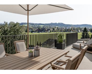 Helle Räume mit großzügigen Fensterflächen schenken eine freundliche Atmosphäre. Private Freibereiche wie Balkone oder Terrassen eröffnen zudem Raum für entspannte Stunden im Freien - mit Ausblick ins Grüne und teilweise auf die Allgäuer Bergwelt.